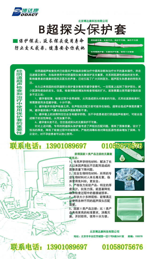 关键字:B超探头保护套、超声探头套、超声检查、交叉感染、一次性无菌、博达康